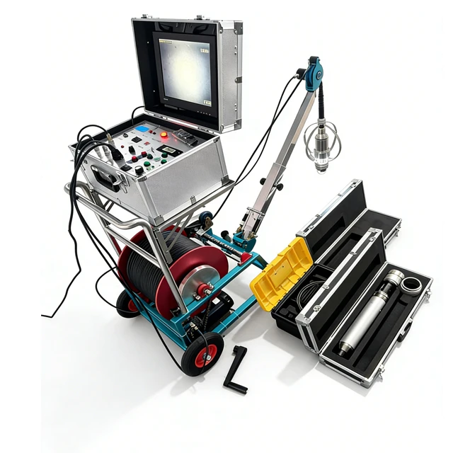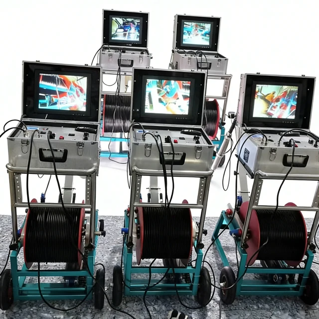 flip. Brightness focal length is adjustable. Manually control the direction and angle of the downhole camera, the brightness of the light source and focal length for clear video images, 5-level dimming. φ40cm and φ75mm probe are with front 6/8 highlight patch beads, φ90mm probe is with front 12 highlight patch beads, rear 16 LED strong light bulb bezel focal |