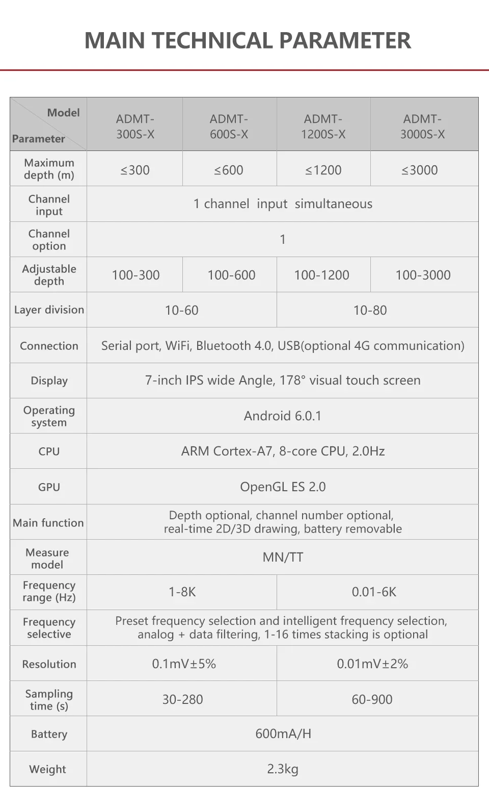 ADMT- 600S-X groundwater detector is measured by natural electromagnetic field strength to response the changes of resistivity,