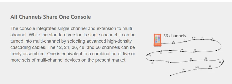 All channels share one console (extension to multi-channels just by increasing accessories and upgrading to enhanced cable).