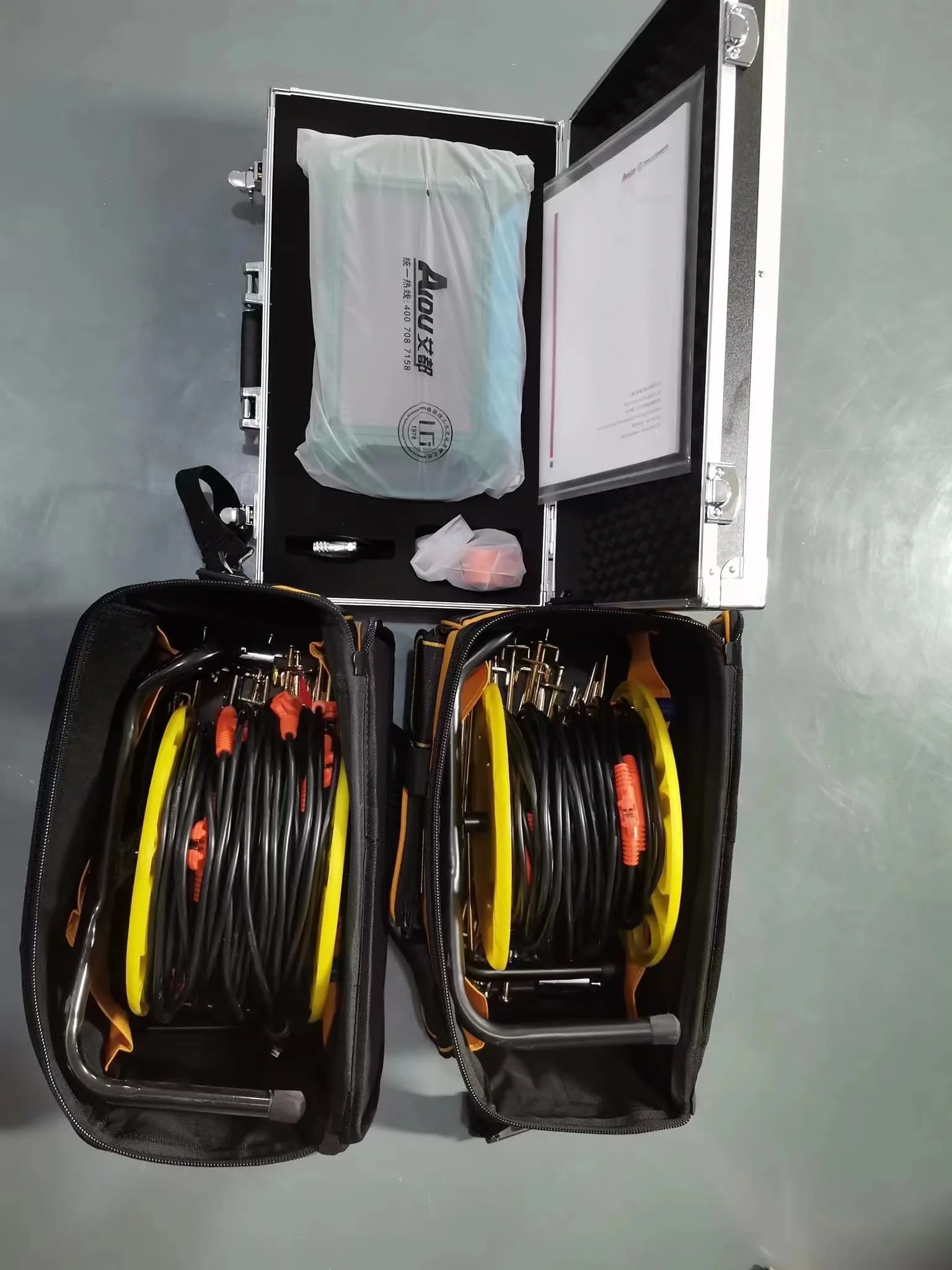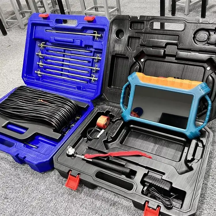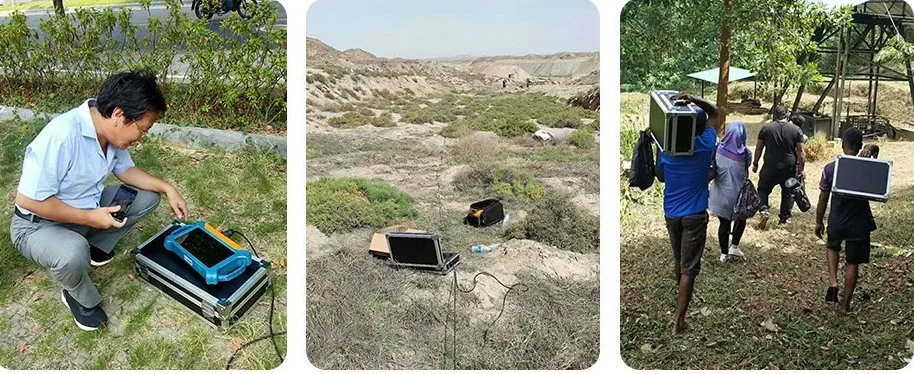 Our water detectors have different measurement methods, cable measurement and wireless probe measurement. The pull-wire measurement method can be adapted to the large area of the site for measurement. It is necessary to insert 32 electrode plates into the ground for measurement to detect the height difference of the underground resistivity to reflect the change of the water level.