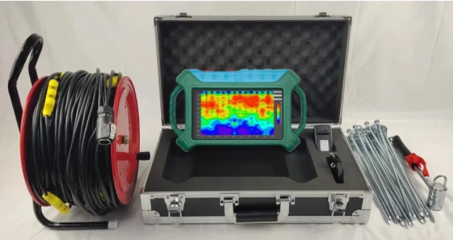 Our water detectors have different measurement methods, cable measurement and wireless probe measurement. The pull-wire measurement method can be adapted to the large area of the site for measurement. It is necessary to insert 16 electrode plates into the ground for measurement to detect the height difference of the underground resistivity to reflect the change of the water level.