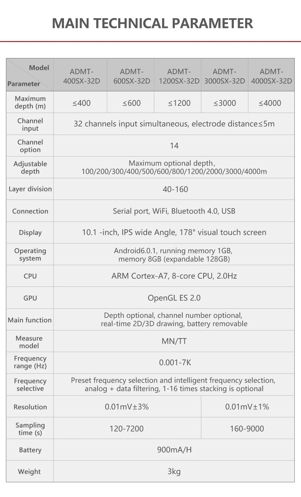 It can input 1, 1-16, 1-32 channels of MN electrodes, and the MN spacing is flexibly variable from 1-5 meters. Electromagnetic