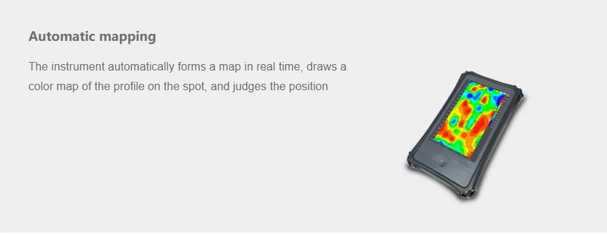 various algorithms such as automatic correction of the magnetic field, directly display the results on site.